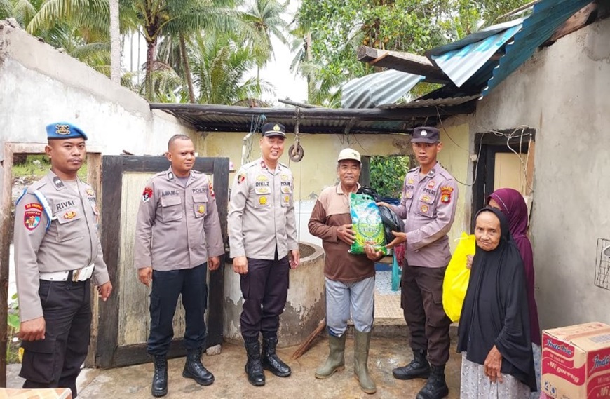 Dalam kunjungannya, Kapolsek Iptu Diki Zulkarnain menyampaikan bahwa bantuan yang diberikan merupakan wujud nyata dari kepedulian Polri terhadap warga yang tengah menghadapi kesulitan akibat bencana alam.